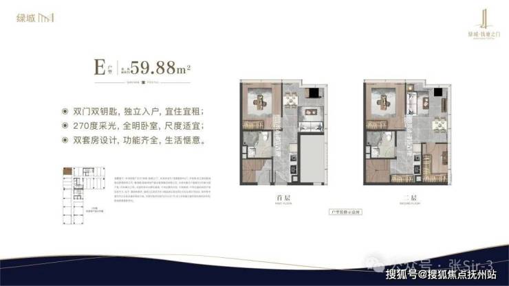 【产品】建筑面积约34-59m²双钥匙