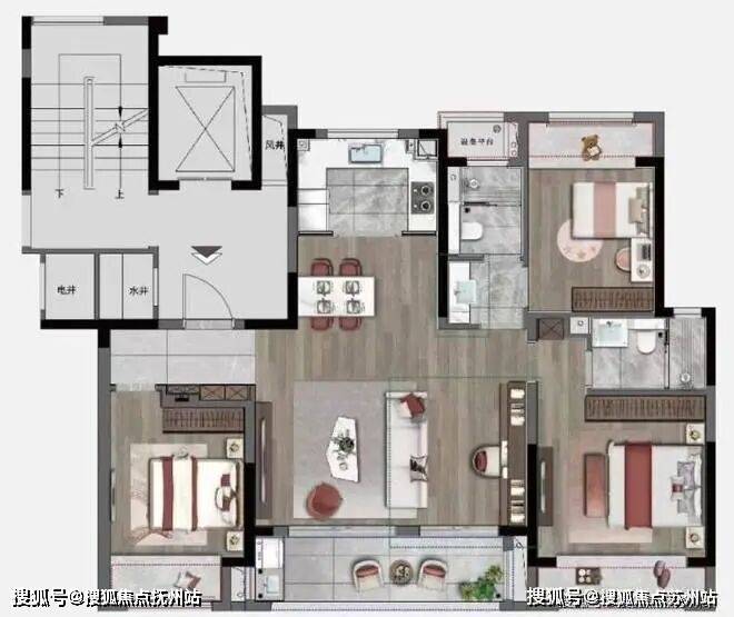 【建面124㎡4居】420.0-440.0万-分布于3号楼 1 ,2梯2户,层高3.00米,总楼层17F