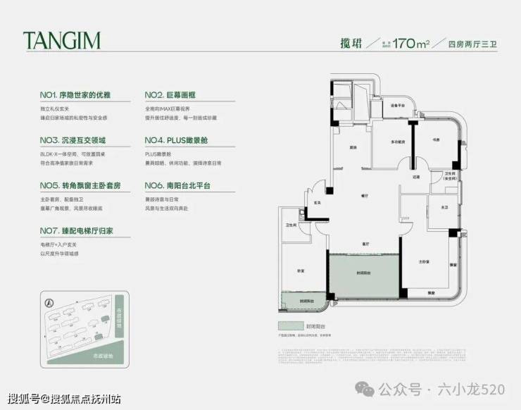 高层与洋房均是风靡全中国豪宅的南厅格局,全部内外双玄关,标准层高约3.3米(少量约3.15米),户户南北双家政空间。