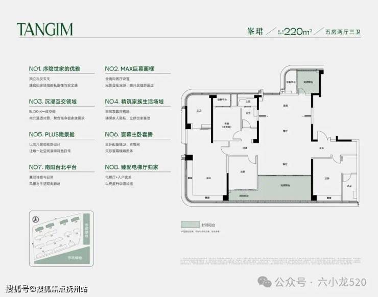 最大约220㎡户型,全明卫,南向面宽跃升至约18.7米。