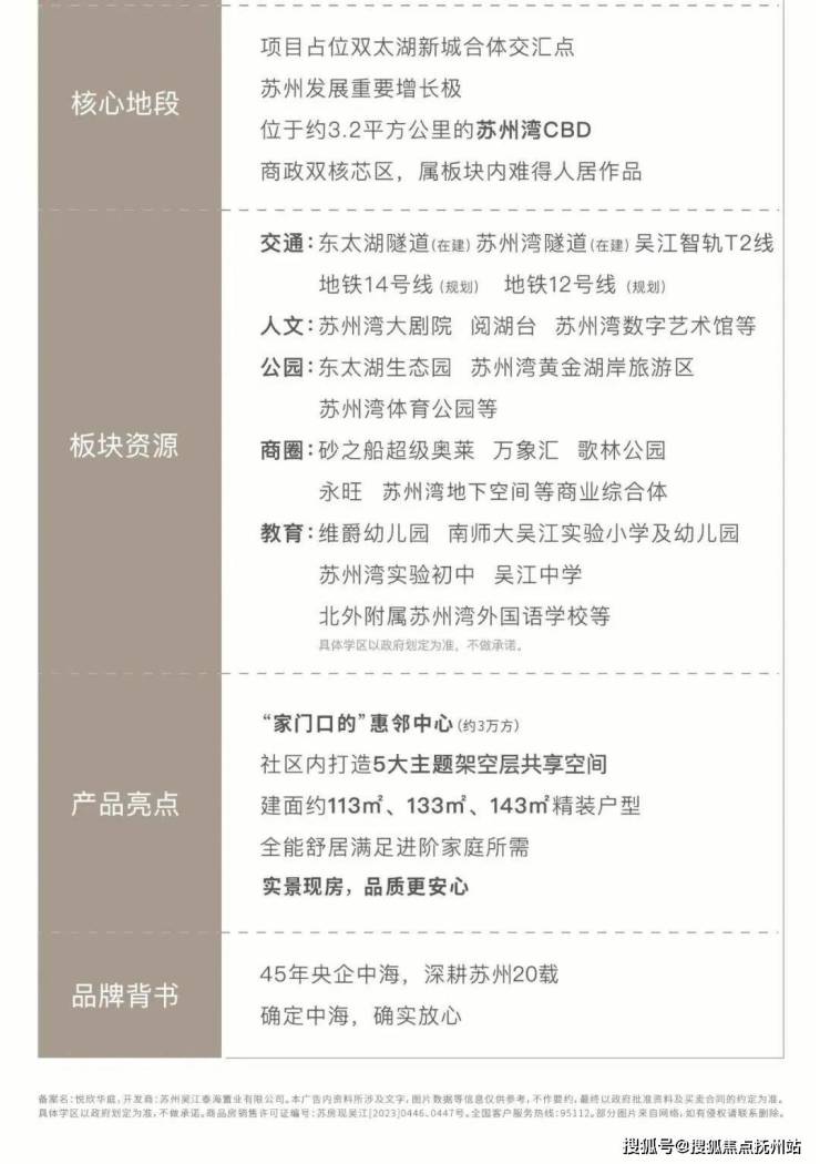 项目近享苏州湾文化中心、阅湖台音乐喷泉、东太湖游艇俱乐部等高端人文配套;约62.3公里国家岸线赋能,坐拥4A级国家风景区生态景观;紧邻南师大吴江实验学校及幼儿园、维爵幼儿园、苏州湾实验初中、吴江中学、北外附属苏州湾外国语学校等15年优教体系;自带约3万方超级生活场——板块内首座邻里中心。主力在售建面约113-143㎡全龄段成长型户型,配备中央空调、新风系统、预埋地暖水管,于全维交通贵脉上,畅享从容人居。