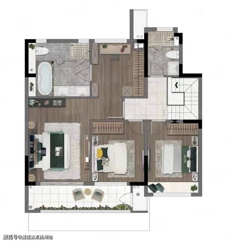 同样是三开间朝南的二楼,有不输五星级酒店总统套房的主卧,这里容得下男主人读书看报的沙发,容得下女主人的步入式衣帽间,更容得下让主人泡澡放松的浴缸。