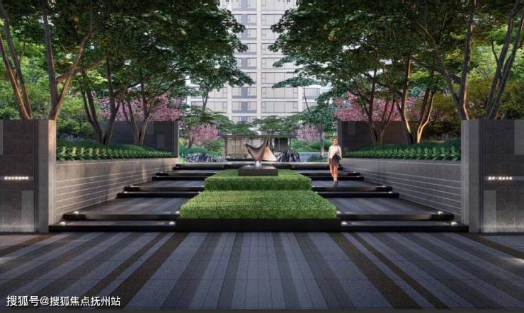 约9米长的镜面水景中轴+6个阵列涌泉,源源不断、生生不息;