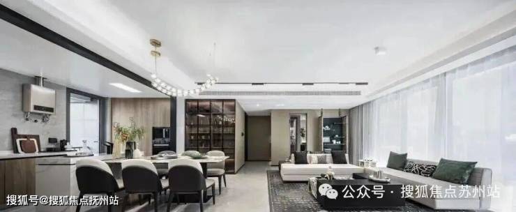 约6米客厅与餐厅、厨房及阳台一体化布局,让空间互动更高效,承载家人欢聚时光