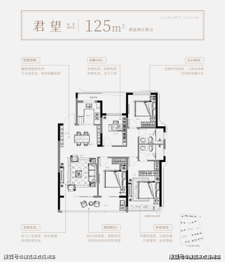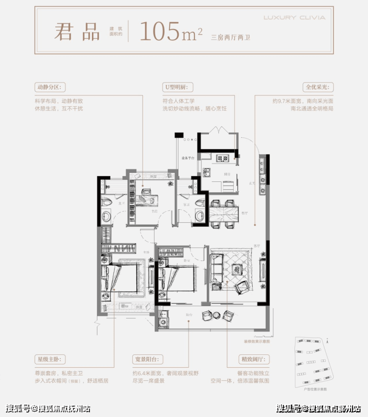 面积是105+125+130㎡。
