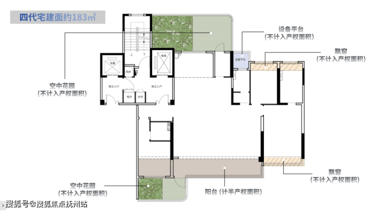 以建筑面积约183㎡户型为例,赠送面积约60㎡,实际可使用面积可达243㎡。空中花园、三阳台、飘窗、设备平台,这些“赠送面积”不是鸡肋,而是生活的加分项。