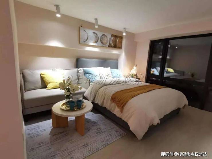 5. 起居区配备了环保衣柜、双人床、沙发茶几。整体布局舒适温馨,可随时拎 包入住