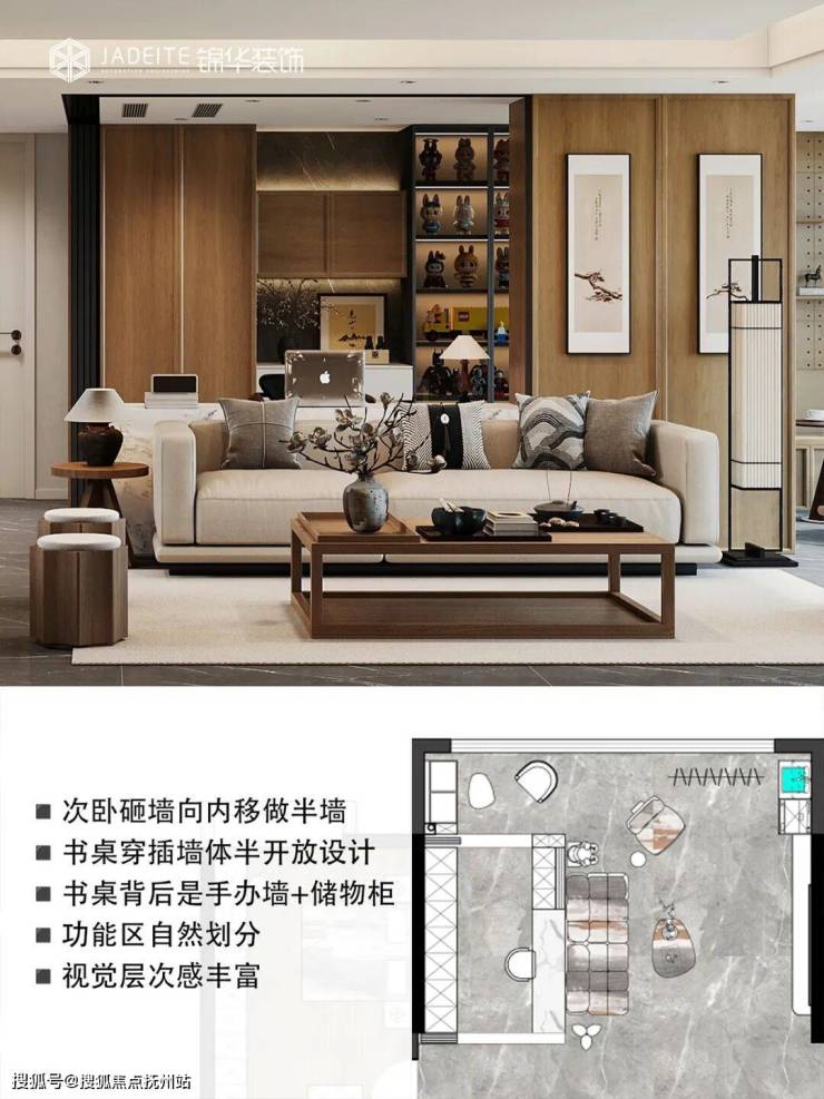 ①南次卧砸掉一面墙内移做半墙,书桌穿插墙体,书房呈半开放设计,书桌背面是手办柜+储物柜,半开放布局既划分了空间,又保证了空间通透感。