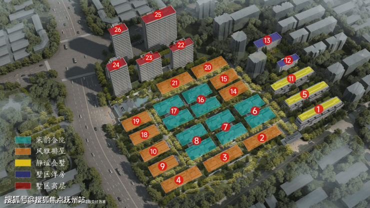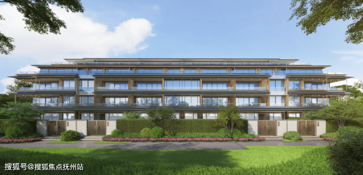 合意阅山提取中式元素与现代设计手法融为一体,设计利用山、水、自然光影等元素,将建筑规划错落有致高低相配,形成建筑与山水环境相生相融、相得益彰的整体风貌。宛如宋画般融于山水,远近有景,各自成趣,浑然天成的宋韵美学,墅区建筑上,以宋代歇山顶为特色,屋面山花、悬鱼、博风板,立面避风䈋、方格挂䈋等宋代符号,让千年韵味流转于建筑肌理,而在叠墅产品主体造型上,以精致奢雅的玫瑰金、灰色多重铝材为组合,结合天青色点缀,从观感与触感上,营造更具高级贵重的建筑印象。