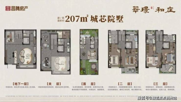 以建面约207㎡起步户型为例,它仅用4个场景,就重构了排屋的居住体验。