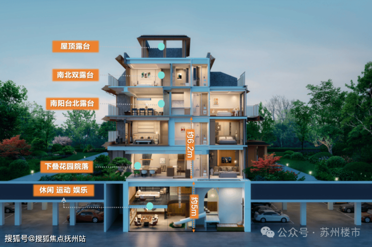得益于此,熙和·雲启观棠整盘打造了24栋3F联排+11栋4F叠加,整个社区一共仅276户,是苏州主城极其罕见的真·纯墅区。