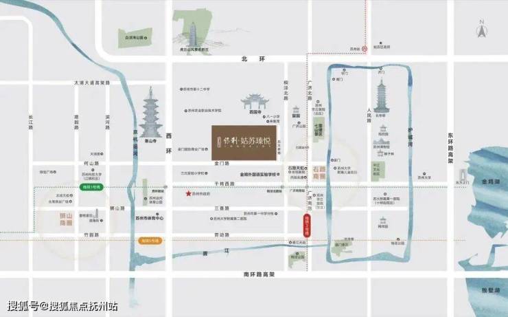 项目坐拥古城核心,距离苏州市政府仅1公里,拥享全套市政便民配套.同时项目距离留园约900米、西园寺约700米、寒山寺约1500米……各类文脉地标群环伺左右.姑苏瑧悦售楼处位置400-8123-664