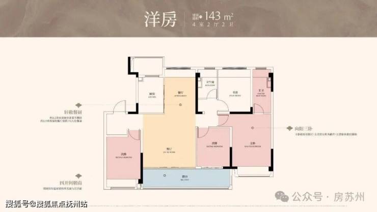 四开间朝南:双联阳台延展家的采光面与赏景面。l向阳三卧:主卧梳妆有阳光,儿童房玩积木敞亮,长辈卧休憩也暖和。