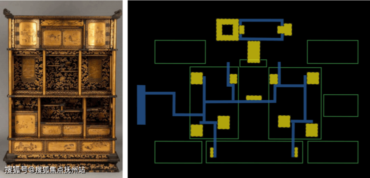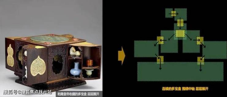 空间设置正如乾隆皇帝收藏的多宝盒一般精妙,层层展开后,有无数的宝藏串联在一起,起承转折的轴线空间中,拥有着无尽的惊喜。