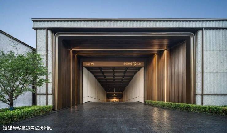 约420㎡的半岛酒店式车马院,含景墙宽约100米、高约6.3米的礼序大门,构成立体的归家空间尽显气派。古铜色铝板重顶、如折叠玉石屏风的三面白世贸波纹石材景墙与福鼎黑晶石地面承托起社区的门面。