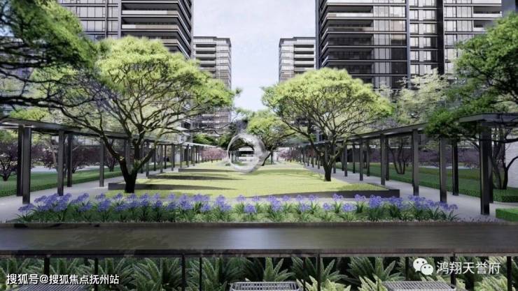 对一般的小区而言,一条景观长轴,已够奢侈。而鸿翔·天誉府不止于此,十字中轴的设计,让纵横的景观网格盛大铺陈,保证每一座建筑、每一个方向,景观视野均无遮挡。同时亦让每一个业主的归家路,更显尊荣气度,礼序不凡。