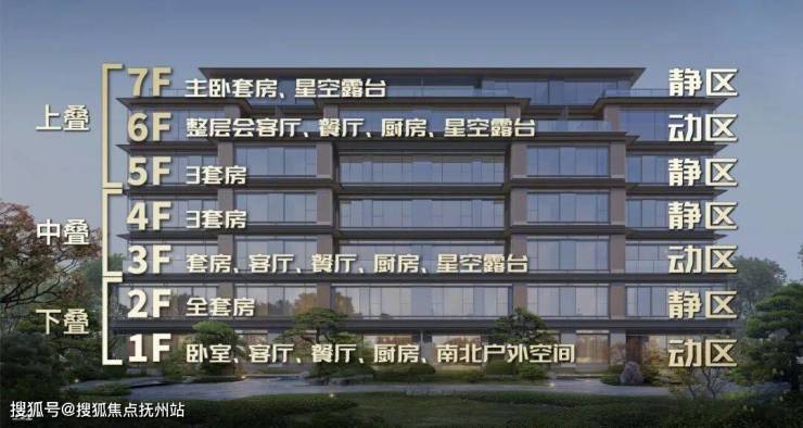 颠覆型户型,高净值圈层共识。建面约180-300㎡的叠加产品,更是以“垂直四合院”理念引发市场惊叹。