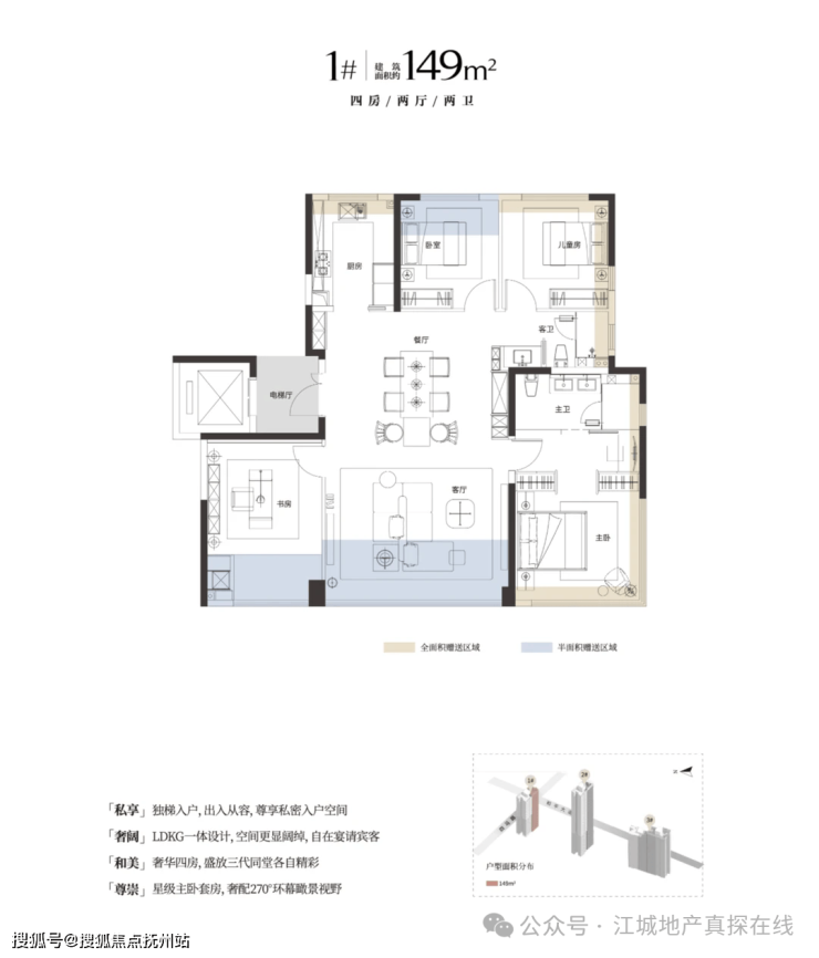 据悉,1、2号楼户型优化后得房率约95-96%(不算电梯前室),是武昌又一准四代住宅