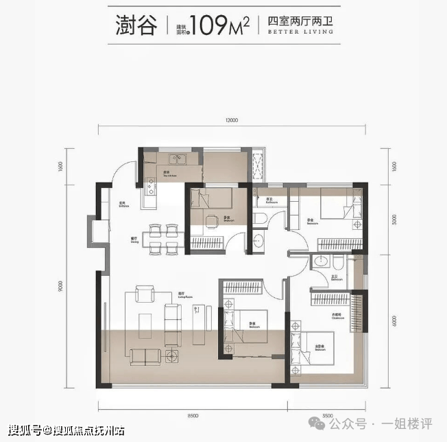 该项目首开前后曾经是风头无两,因为它超过得房率,建面约109平做四房,非常抢眼。