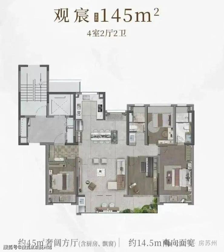 本次取证主力户型洋房约145m²,叠墅约225-305m²。