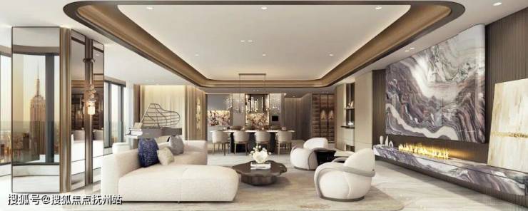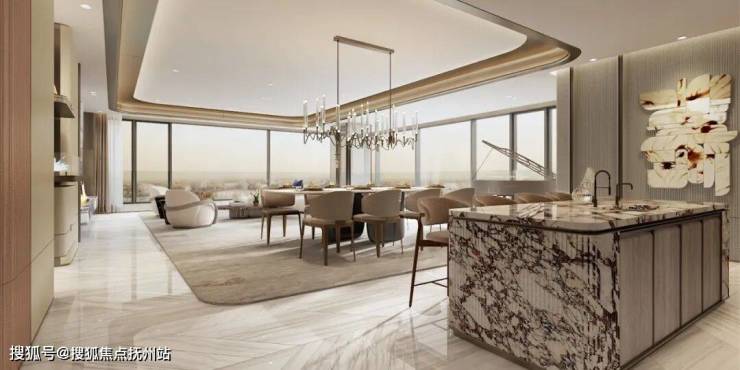 新希望·D10黑珍珠传袭建面约310㎡,客餐厅约90㎡LDK+G四大公共空间洄游式布局,延伸复合型社交主场,落地幕墙体系超大景观尺度,U型连续落地玻璃幕墙,约50M巨幅无遮观江面阔境大面宽,蓝丝绸奢石电视背景墙彰显气质。
