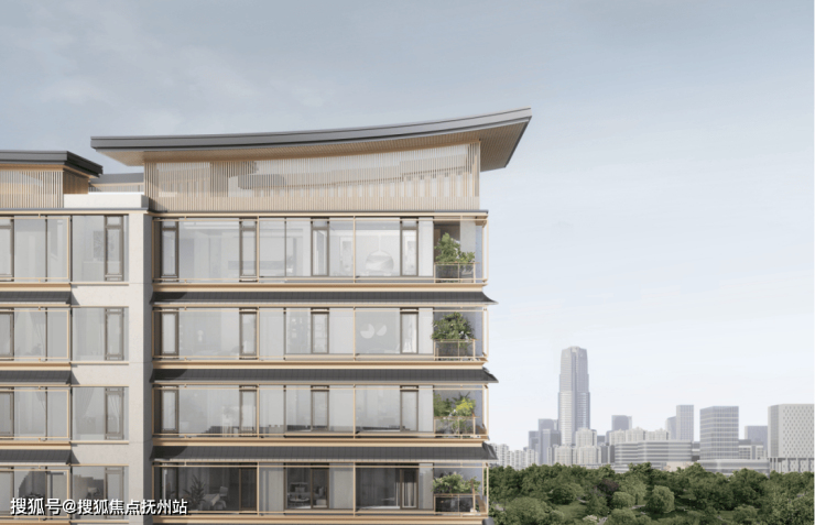 整体高窗墙比,也是对宋韵生活的另一种高度还原,更显屋身轻盈,同时视野更开阔、观景更流畅,让居者可随时与自然互动,衍生出一种开放、自由的居住氛围。