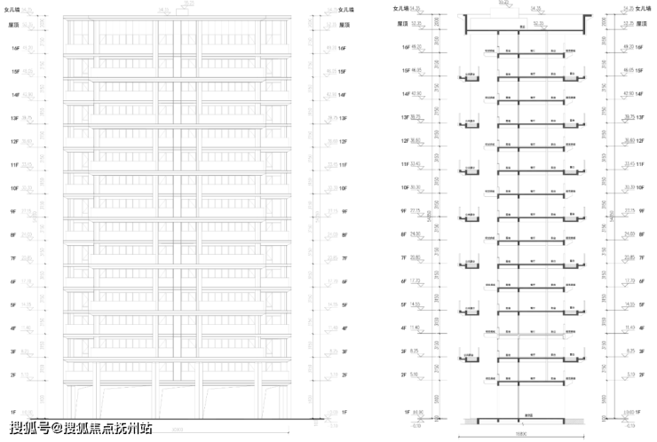 接下来就是高层,一共8幢,分别是14-20层,都是两梯两户,带有四代宅标志性的空中花园,并且运用了奇偶错层出挑的设计。从效果图来看,应该是偶数层南向露台,奇数层东西向露台,而且北向好像还有露台!因为单层层高约3.15米(下图),那么在错层设计之下,空中庭院就拥有了两层层高,挑高达到约6.3米。而且高层全部架空,架空层层高也有约5.1米,至少从基础数据上来看,符合当下豪宅标准了!
