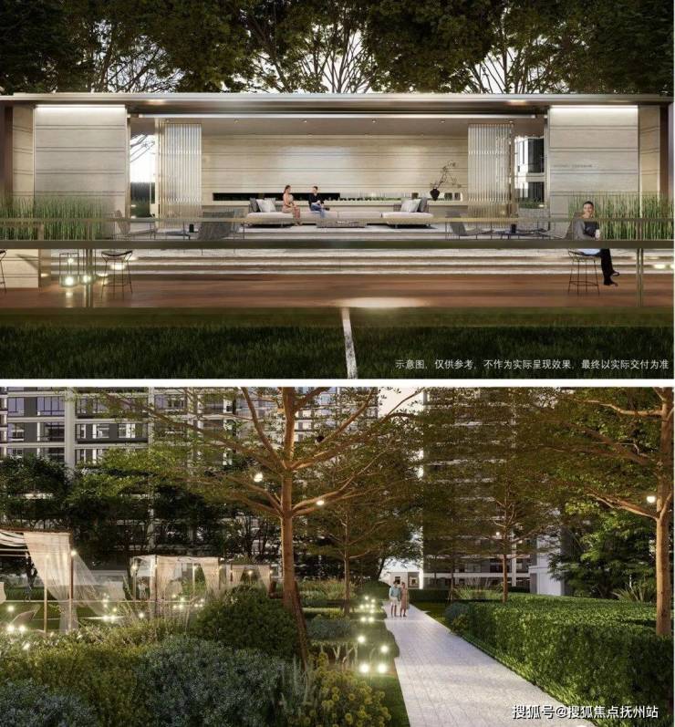 温润木质的瞭望台、微度假卡包空间、条石分割的秩序草阶组团呈现多功能共享空间,主题聚餐、生日 Party、户外影院、演艺活动……满足全龄段业主潮流追求。