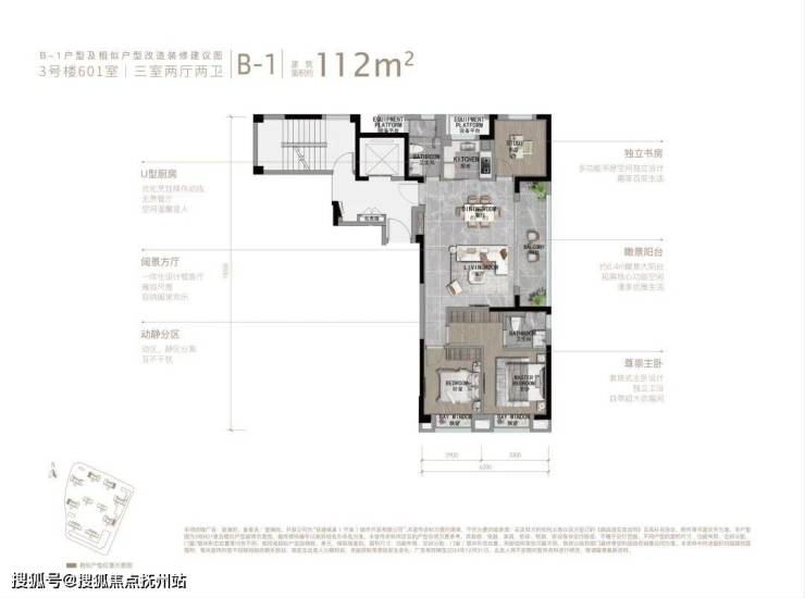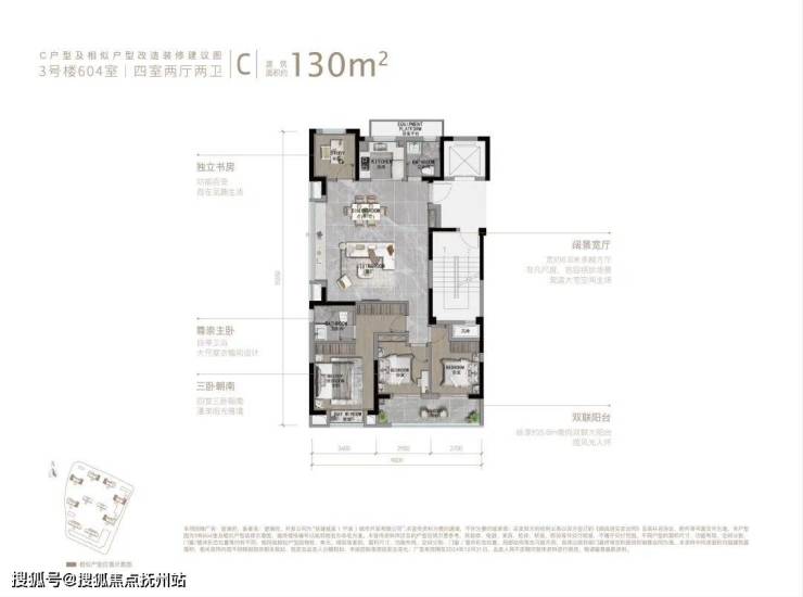 • 套房式主卧:主卧度假套房式设计,自带飘窗、卫浴