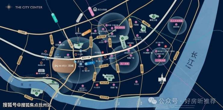 ·三轨: 近邻1号线、3号线、12号线(在建),贯穿武汉两江四岸