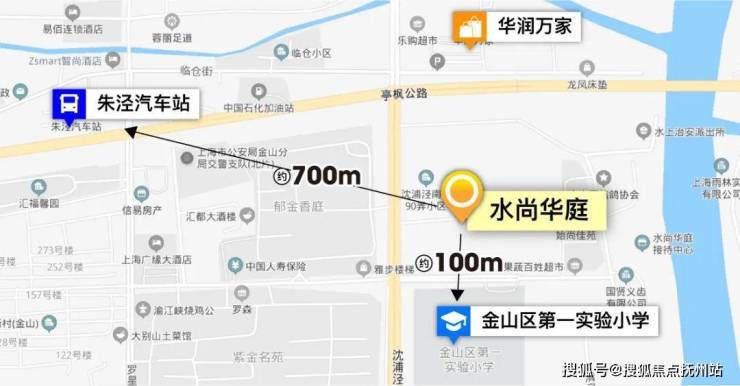 项目位于 金山朱泾板块,而朱泾有两个很大的特点, 一是交通优势显著,二是老金山县城所在地,配套相对成熟。