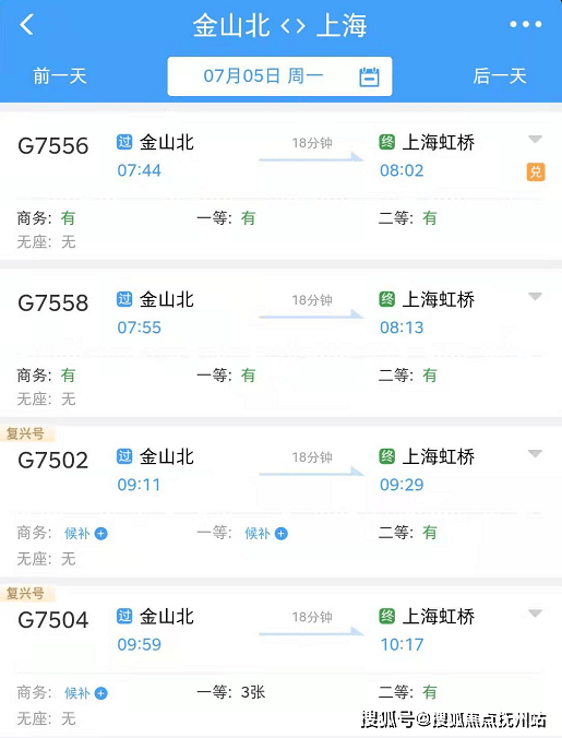 再向西就是金山北站,这里每天有不少高铁、动车班次直达虹桥: