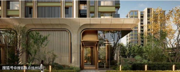 取意豫园中式园韵,打造约99米隐奢入口空间结合独立的车马院,风雨廊道与人车分流独立双入口,带来尊贵的归家体验。