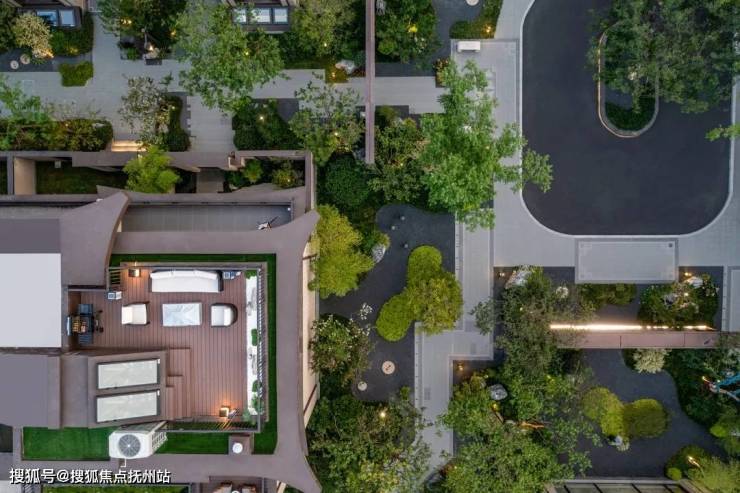 建发在中式小景点缀中用足了心思,路看两头,石看三面,巷道用了黑山石造景,兼顾每个入户转折对景,寓意“石(时)来运转”。
