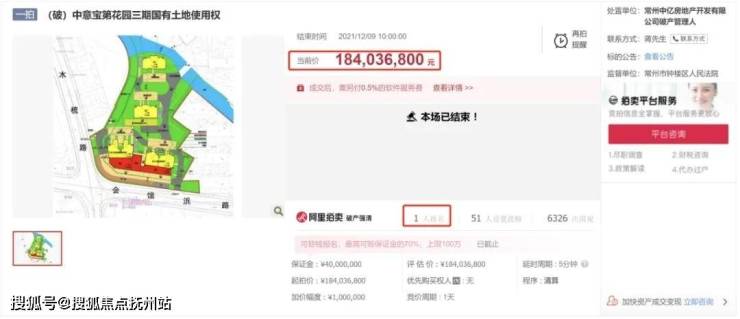 2021年12月8日起对常州中意宝第花园三期国有土地使用权进行了拍卖,最终成交价1.8亿元。