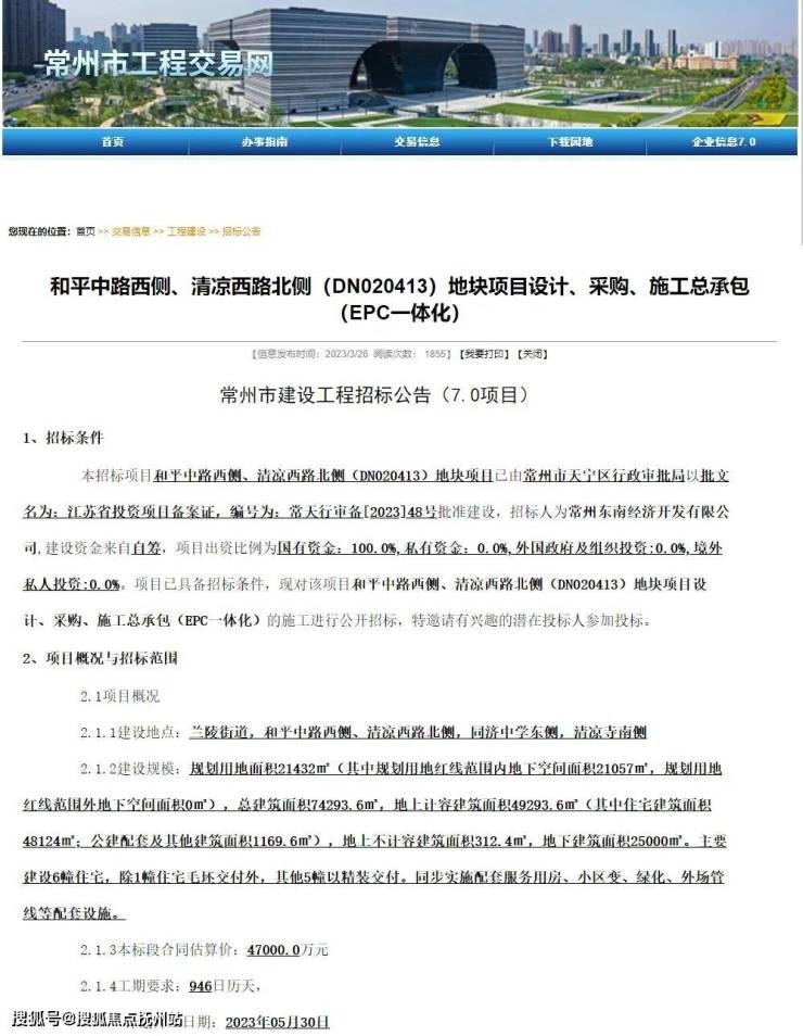 项目整体工期为946天,预计2023年5月30日开工,据悉将由新城与天宁建设合作开发。