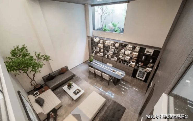 看一眼外立面,白色石材、香槟色的木纹铝板、大面积玻璃的拼接组合,怎么看都不像一个门槛只有400万+的低密叠墅。玉琮水景、山石跌水等等融入景观的大量良渚文明元素,弥漫着专属于杭州的千年气韵。满眼的“越级感”再配上只有1.2的超低容积率,才呈现出一座全低密真双叠大盘的样子。