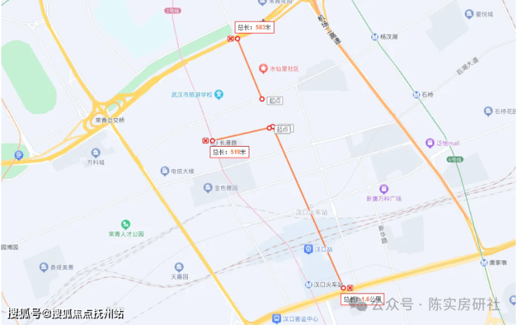 1、该项目位于汉口二环与三环之间,更靠近三环,属于江汉区杨汊湖片区。实际上这个区域比较靠近汉口火车站,与汉口二环内资源能级有一定差距。