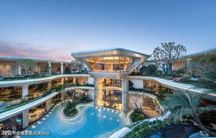 竖向高差达约16米、超万方规模的三层立体水院会所、3个约2000方的景观庭院…其中,光是水系就有超2500方,市场罕见。