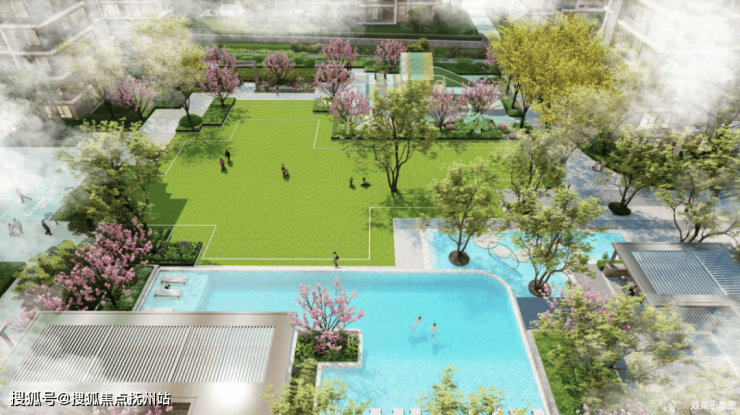 以社区会客厅、儿童戏水池等,构筑有自然、有温度的美好生活场域。