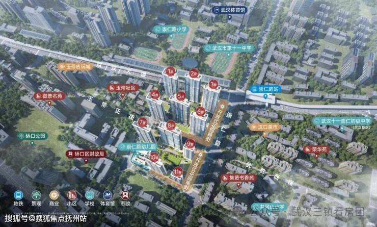 顶序汉口百年天赋内环,京汉大道与崇仁路交汇处,城市高阶烟火气与摩登时尚感融汇在此。领瞰全球高端生活淬炼,凝萃全方位TOP级城市资源,城市顶奢繁华配套聚合于此。