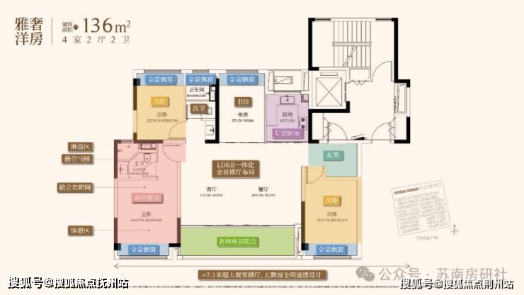 136㎡洋房:首批次44套,超大横厅,奢阔4房,匹配四口之家进阶优居.