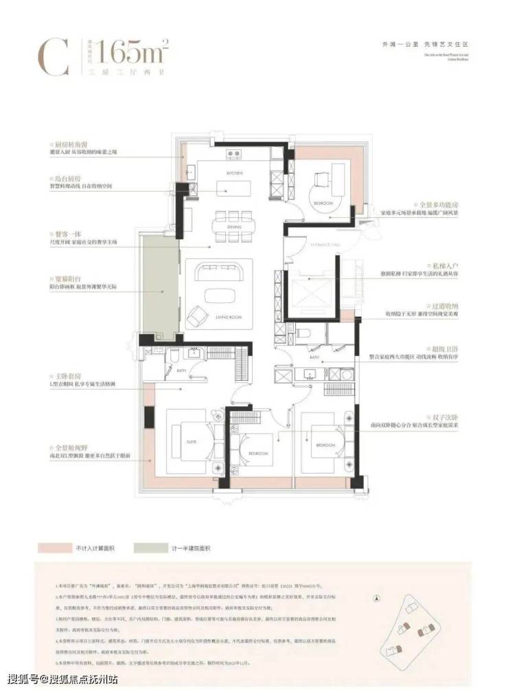 因此,外滩瑞府在建面约165㎡户型中创新推出三四房灵活定制体系。