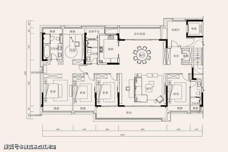 阳台面宽超10米,餐厅北侧就是空中花园,南北双阳台设计相当大气,主卧直接升级成了全顶配,衣帽间+大飘窗+双台盆卫浴,甚至还囊括了书房。