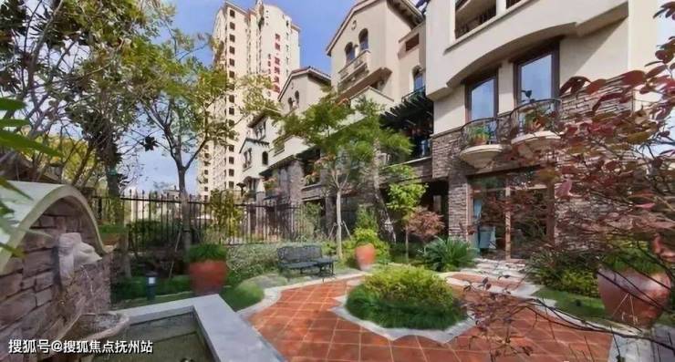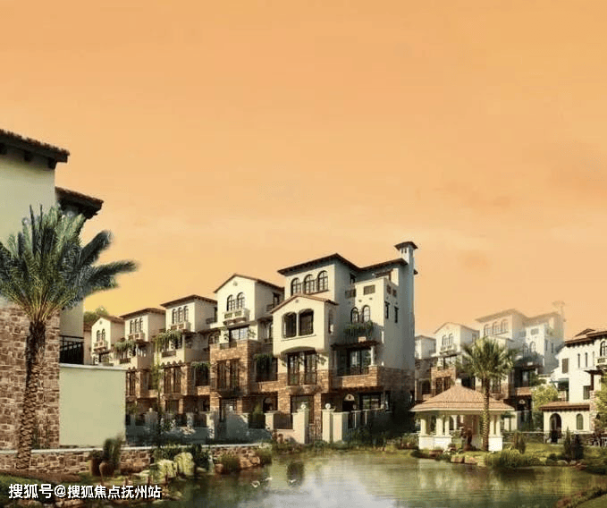 「同润•蓝美俊庭」采用南加州的建筑风格,外立面采用文化石和暖黄色涂料,搭配红色的筒瓦、烟囱、铁艺栏杆等建筑,尽现南加州原乡风情。