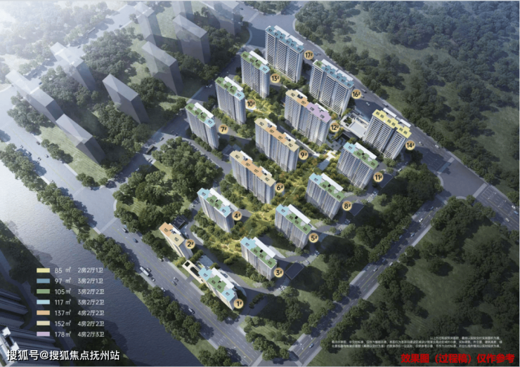 小区总规划户数约1118户,容积率2.3。设计的住宅为16-17f小高层产品,其中部分楼栋设有架空层,其中6#9#12#将有可能为大户型,类一梯一户,其余为一梯两户设计,舒适度较高。