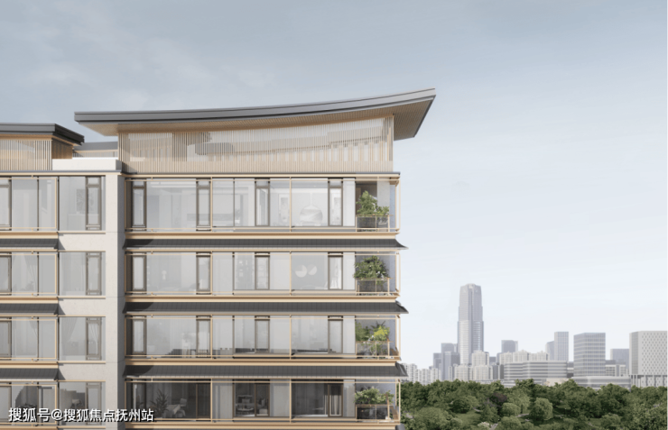 整体高窗墙比,也是对宋韵生活的另一种高度还原,更显屋身轻盈,同时视野更开阔、观景更流畅,让居者可随时与自然互动,衍生出一种开放、自由的居住氛围。