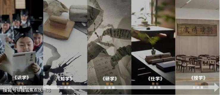 在社区内部规划上,文璟府以家风家学为精神指引,以文人风骨打造学识五境,以诗书情景再现文居九章,规划“三轴五进九景”人文园林。