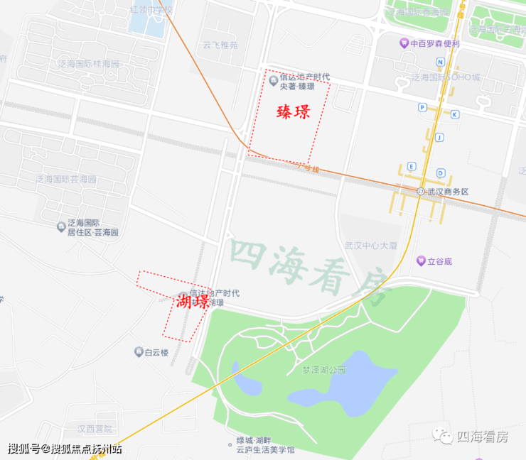3、双地铁交汇,下楼即公园,高层可看湖!信达时代央著·湖璟距离地铁3号线和7号线换乘站武汉商务区站直线距离仅600米,且小区东侧隔条马路就是梦泽湖公园,高楼层可以看湖景,这样的交通景观资源配置在市中心是非常稀缺的!