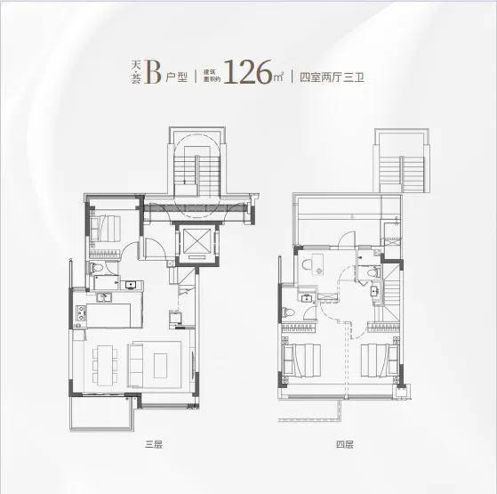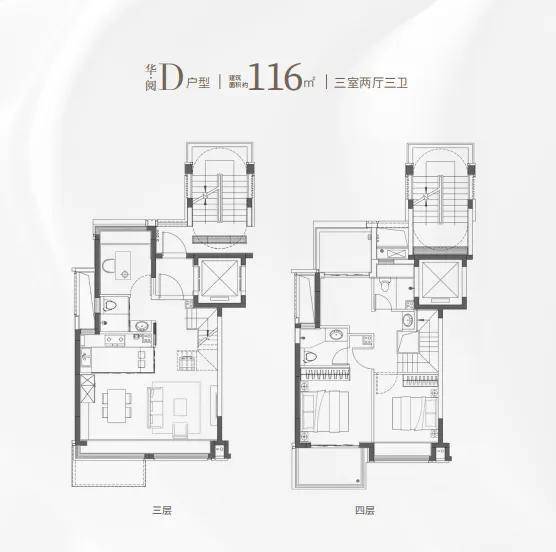 同样是3房2卫的配置,功能性与舒适度兼具。